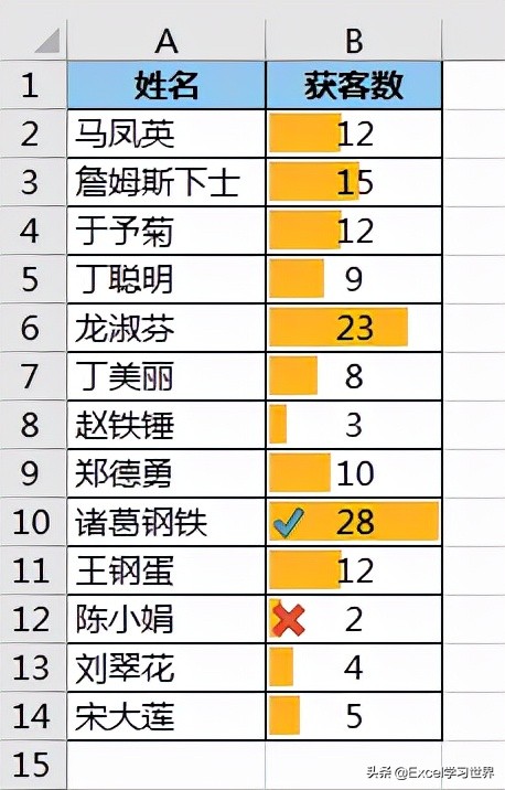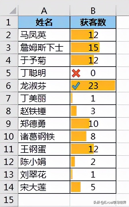 给下图 1 的数据表加上数据条,同时自动标出最大和最小值,效果如下图 2 所示。