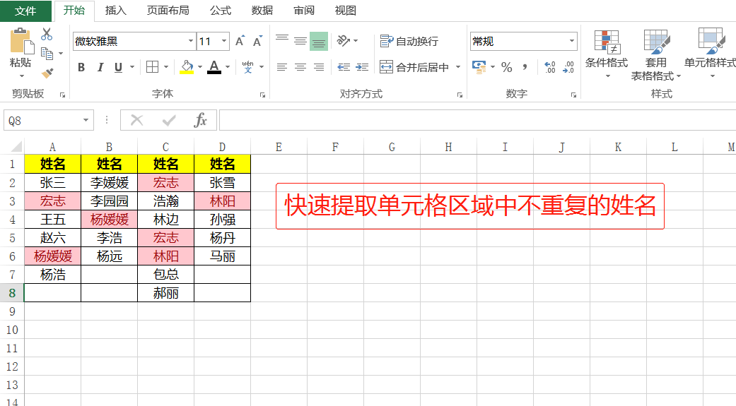 在进行数据统计的时候,相信许多同学都会碰到一种操作,那就是从许多姓名当中提取不重复的姓名。这就涉及到数据的快速去重操作。