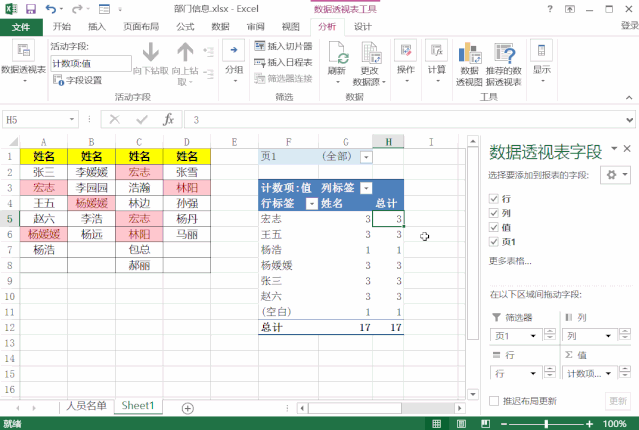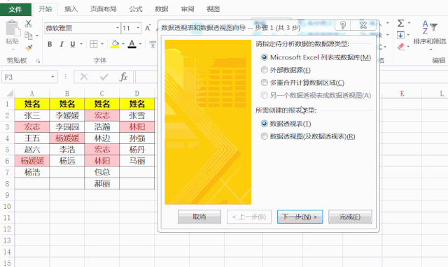 通过Alt+D+P的组合键,这样我们就快速的提取到了多行、多列姓名中的不重复的姓名,相比复杂的函数公式会更简单,比复制粘贴的方法又更高效。现在你学会了吗?