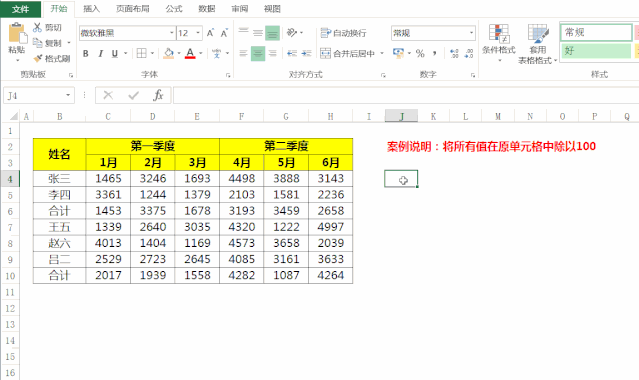 通过选择性粘贴的方式,我们就可以在不变化数据区域的情况下,直接在数值当前位置全部一次性除以100的值。现在你学会如何操作了吗?
