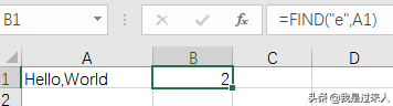 下面例子里,我们使用了FIND函数查找字母e,在A1上的位置。