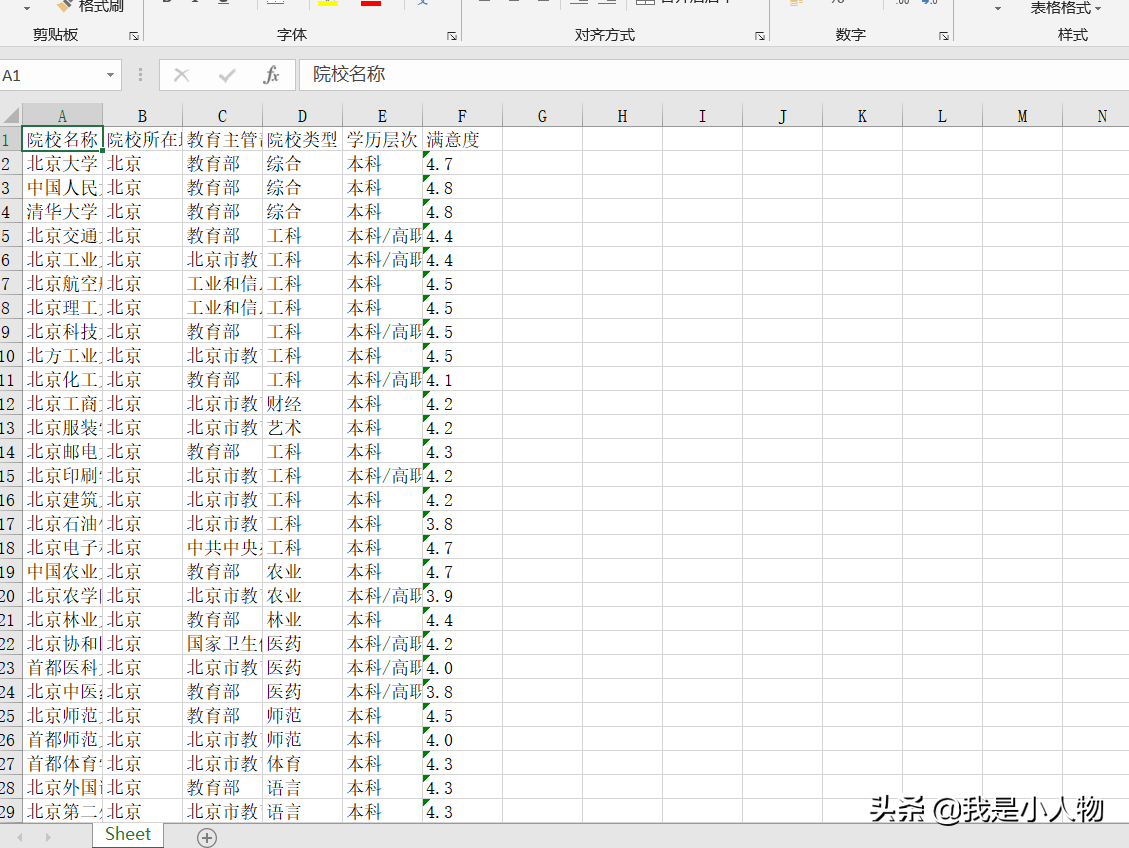 title = ['院校名称', '院校所在地', '教育主管部门', '院校类型', '学历层次', '满意度']