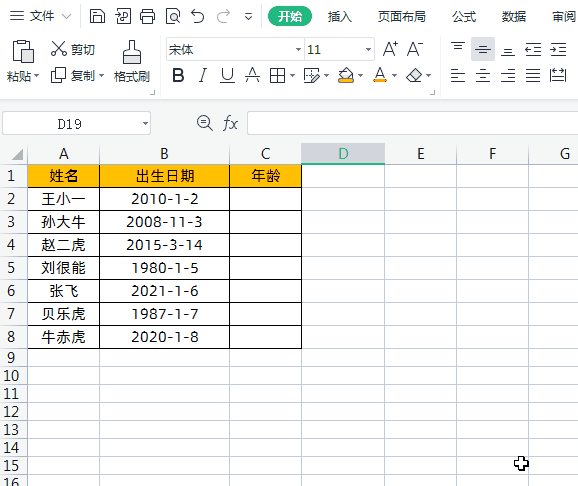 公式=DATEDIF(B2,TODAY(),"Y")
