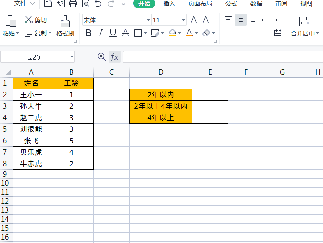 FREQUENCY是分段计数的一把好手,如下图所示,我们根据员工工龄分2年以内,2年以上4年以下,4年以上员工人数。
