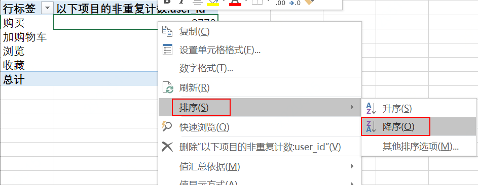 将用户行为数字标识1、2、3、4依次替换为浏览、收藏、加购物车、购买。