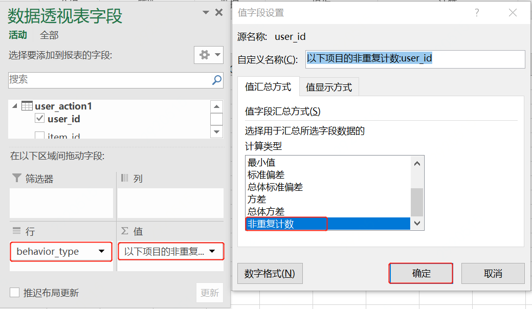 由于用户标识存在重复值数据,所以要分析每个用户行为需要去重处理,以此来统计每个淘宝用户的实际行为。