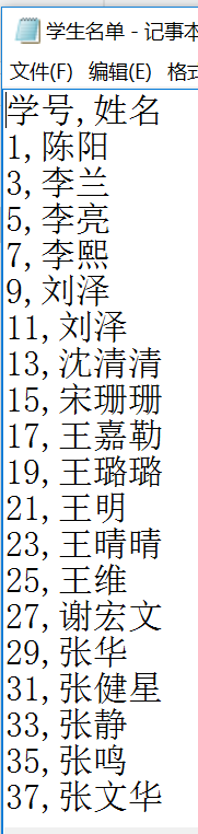 stu=pd.read_csv('d:/abc/学生名单.csv',encoding='gbk',index_col='学号') #读入csv文件