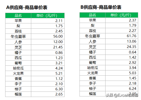 比如第1行的公式:VLOOKUP(B2,供应商A!A:B,2,0),可以正确计算出结果,但是如果供应商现在换了呢?一个产品报价还好,如果涉及到多个产品报价的调整呢,再来大幅度修改VLOOKUP的公式,那可真就欲哭无泪了。