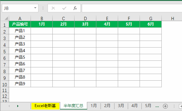 观察表头,这里表头列的名称和Sheet名称信息一致,故通过获取列头的名称来跨表进行数据提取,So,这里便用到了B$1&"!B",由于产品1到产品9是分布在每一行,所以这里用了一个ROW()函数来动态获取行,最终通过INDIRECT来合并处理,即可达到实现效果。