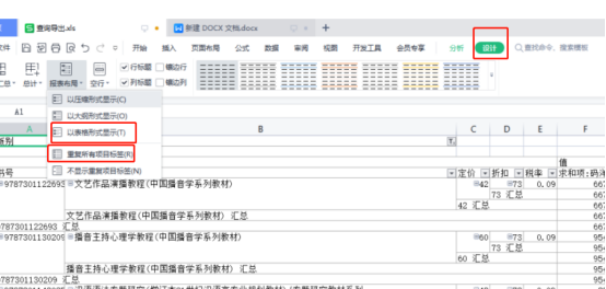 这个表格仔细看,确实是我们想要的,但是呢,看着太难受了(其实这样展示有它的意义),我们可以对其格式进行修改,设计-->以表格形式显示/重复所有项目标签 都点选上,
