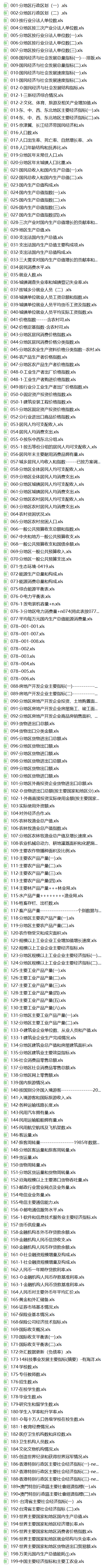 199个Excel表单,统计数据非常之全面。