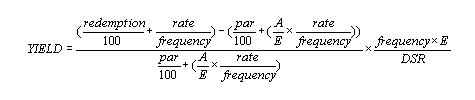 YIELD(settlement,maturity,rate,pr,redemption,frequency,basis)