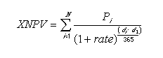 - 如果 dates 中的任一数值先于开始日期,函数 XNPV 返回错误值 #NUM!。