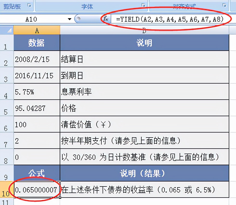 返回定期付息有价证券的收益率,函数 YIELD 用于计算债券收益率。