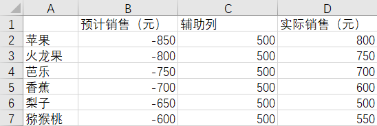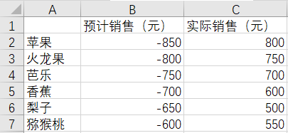 将“预计销售(元)”中的数据改为负值。
