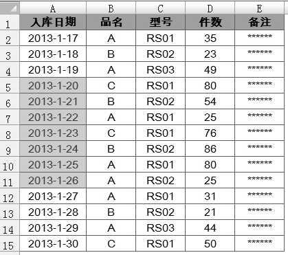所示是某企业的入库登记表。实际工作中工作人员经常需要查看上一周的入库信息,可以通过设置条件格式来自动标识特定日期,方法如下。