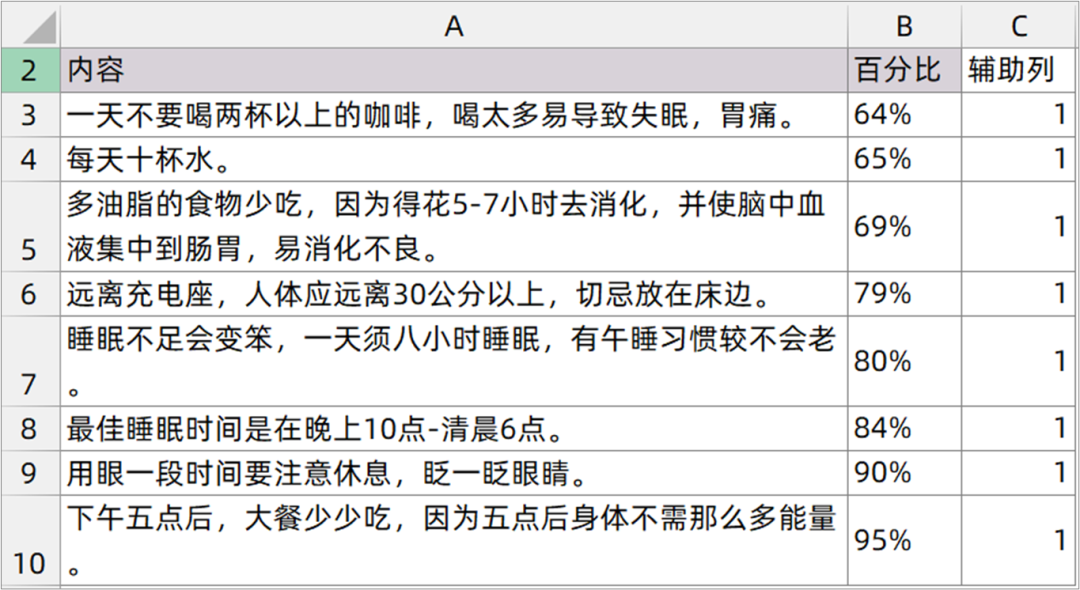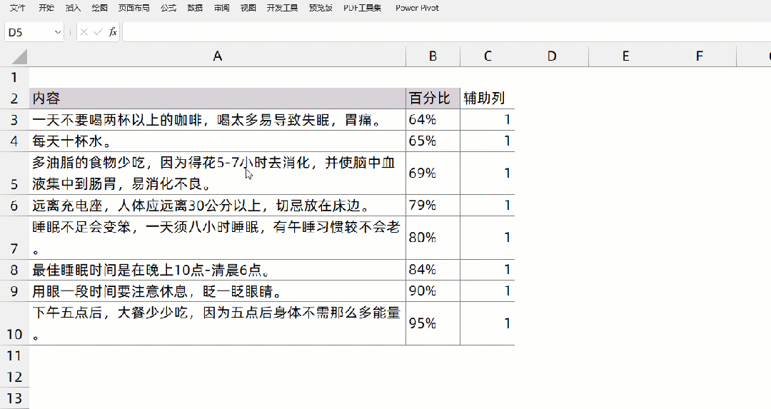 1.在原有数据的基础之上增加一个辅助列.