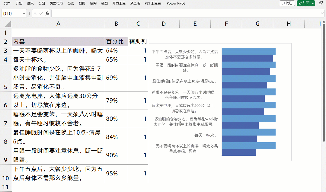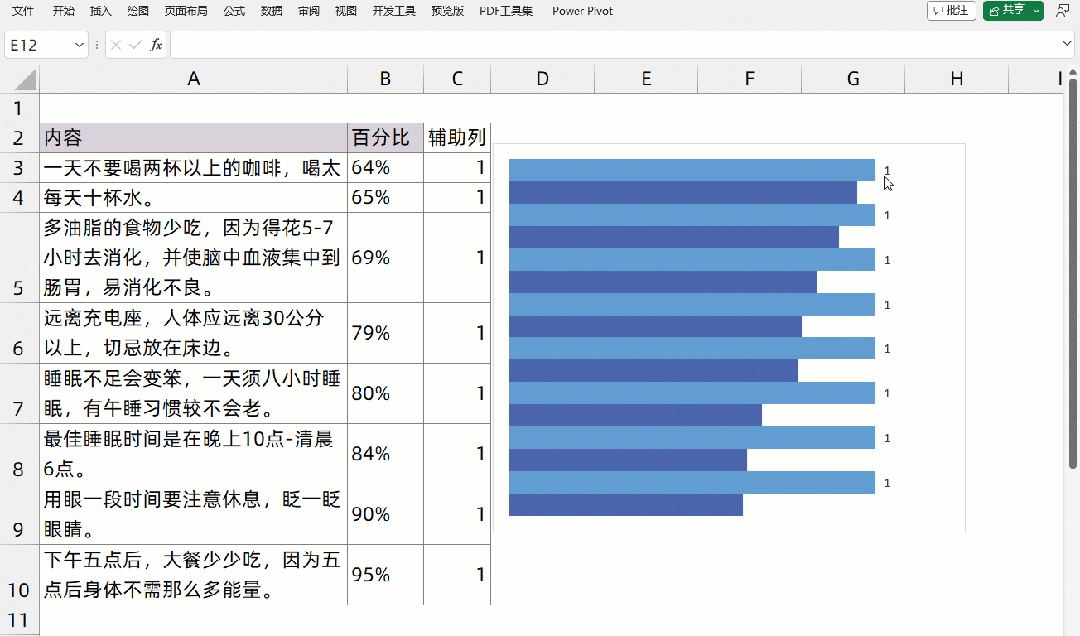 8.将辅助列的条形颜色设置为无色填充.
