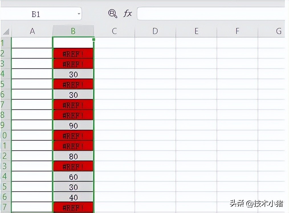 如下图1的表格,这里举个简单的例子,在里面有正确的数字,还有很多错误值“#REF!”,现在我们要把这些错误值快速标记出来。