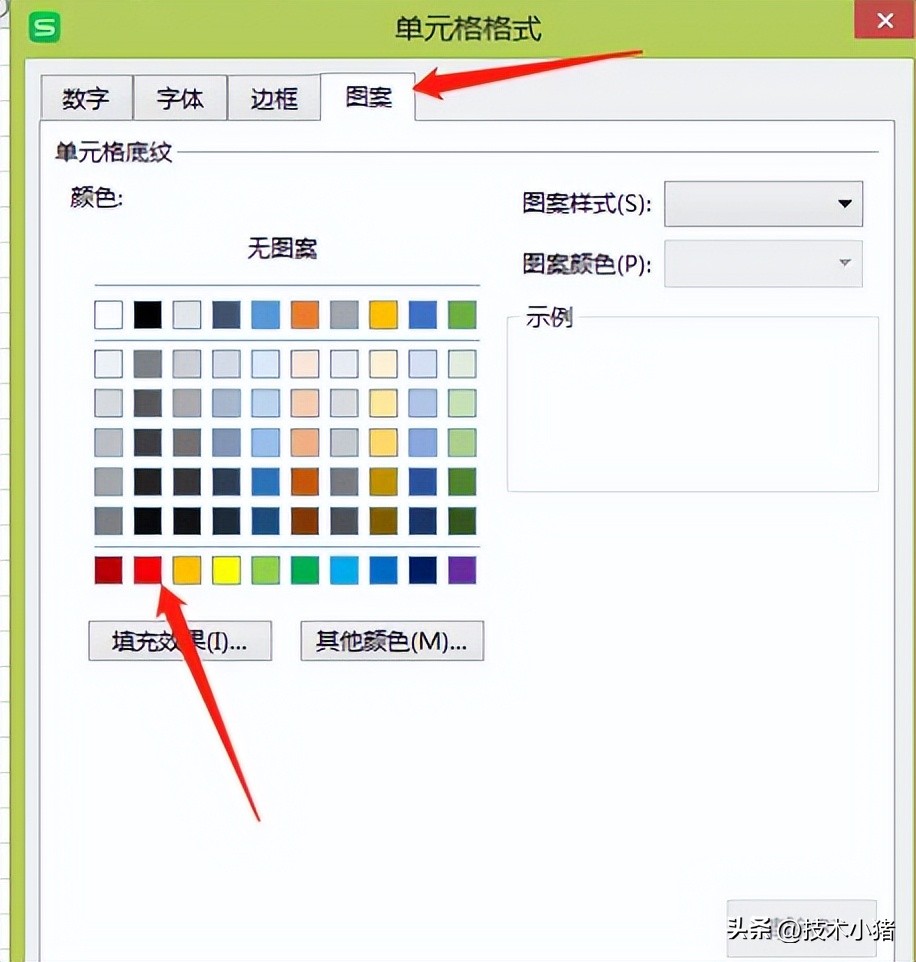 来到单元格格式设置界面,在该界面中点击最后一个“图案”选项卡,选择想要突出显示的颜色,点击确定。