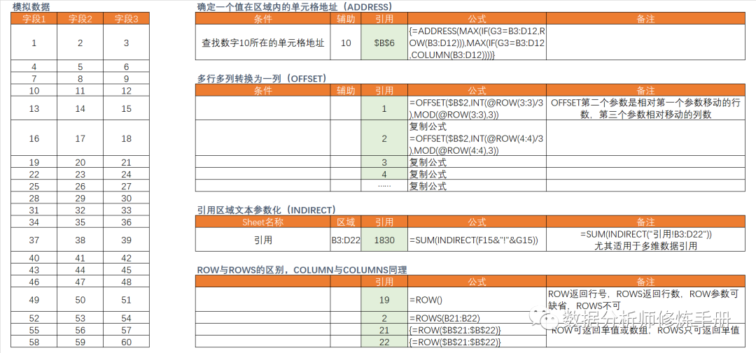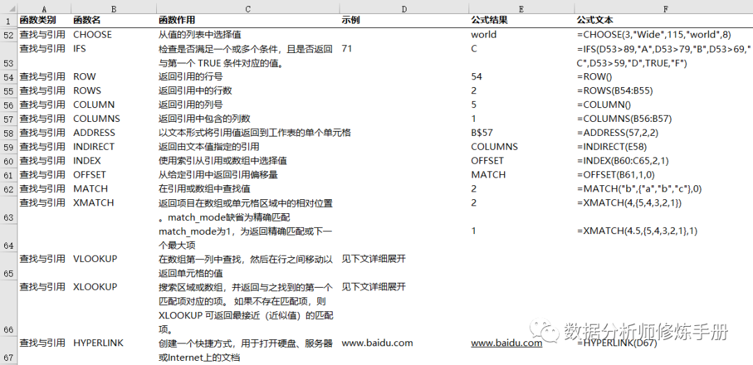 查找与引用类型函数是相对比较复杂的一类函数,我们先将比较重要的这类函数的基本用法示例说明,然后再针对比较常用的函数组合用法详细展开。
