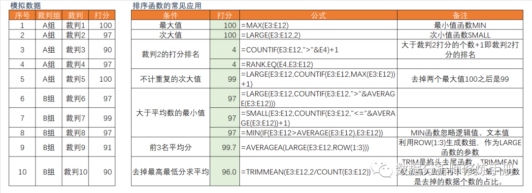 - 前/后N名平均分(AVERAGE+LARGE/SMALL+ROW/COLUMN)