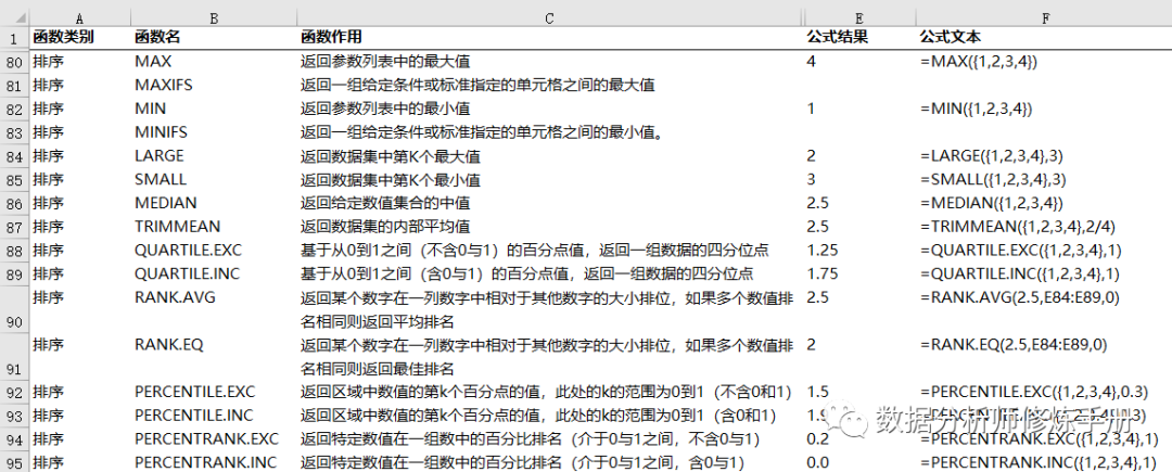 统计类型函数,还有各类分布的对应函数,如正态分布的NORM.DIST函数和γ分布的GAMMA.DIST函数。我实际工作中几乎没用到过,感兴趣的可以自己再深入学习了解。