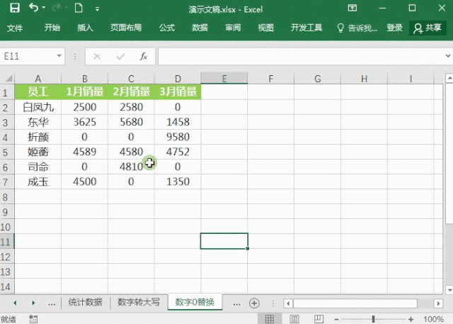 2、精准替换数字0
