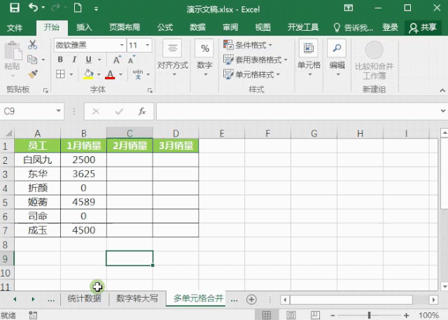 3、批量合并单元格