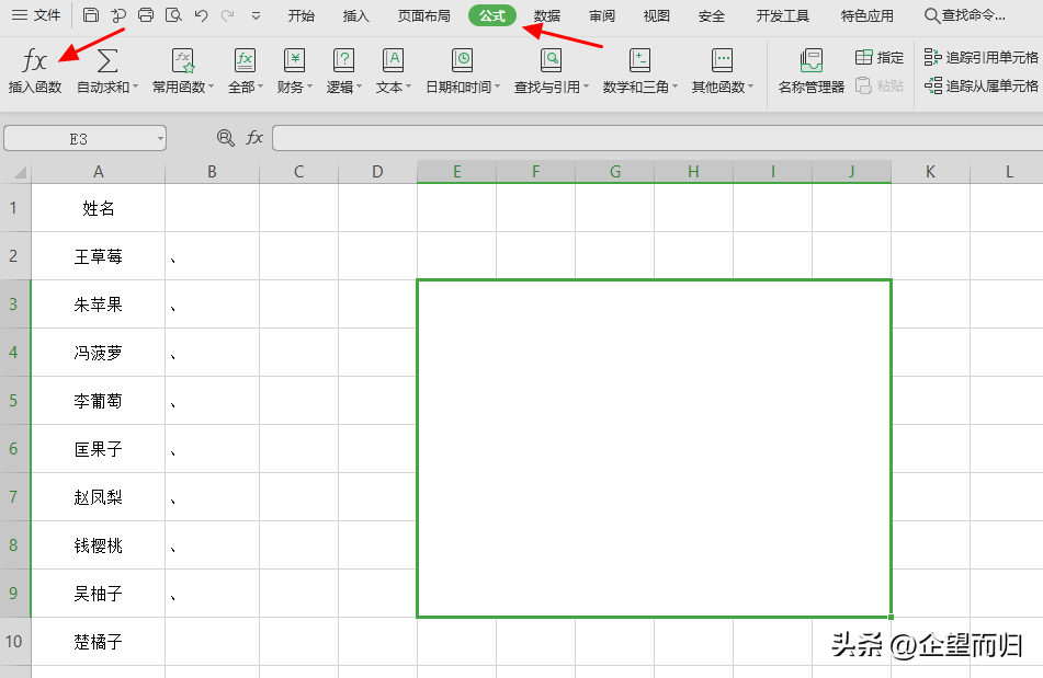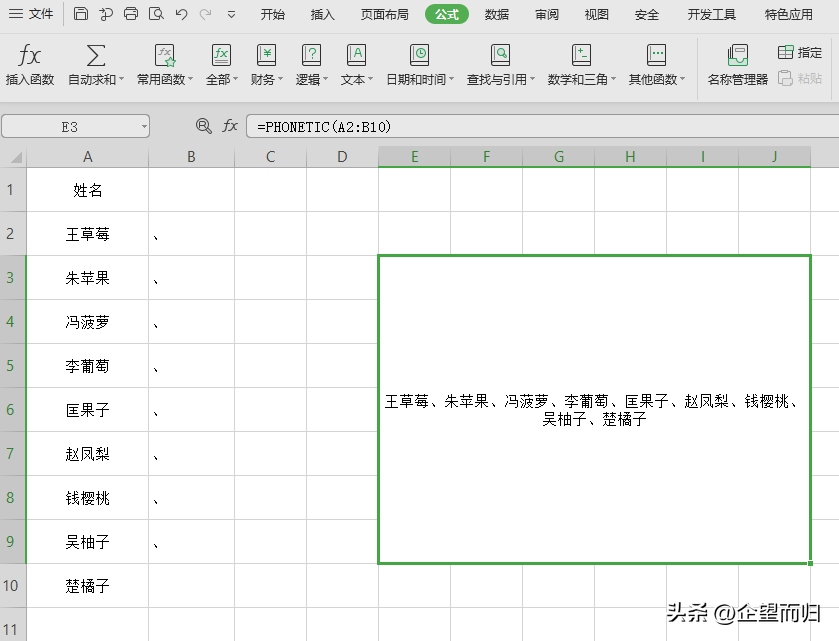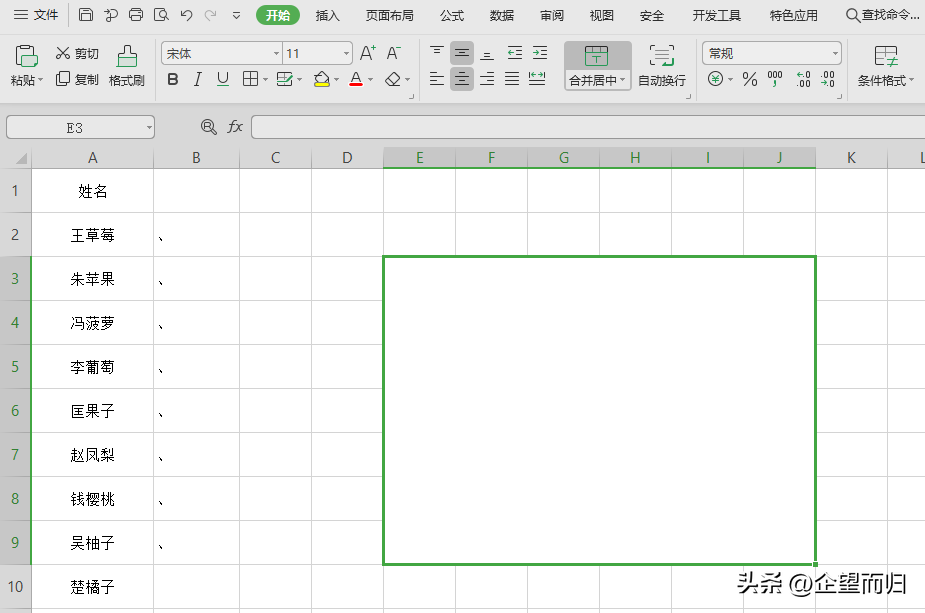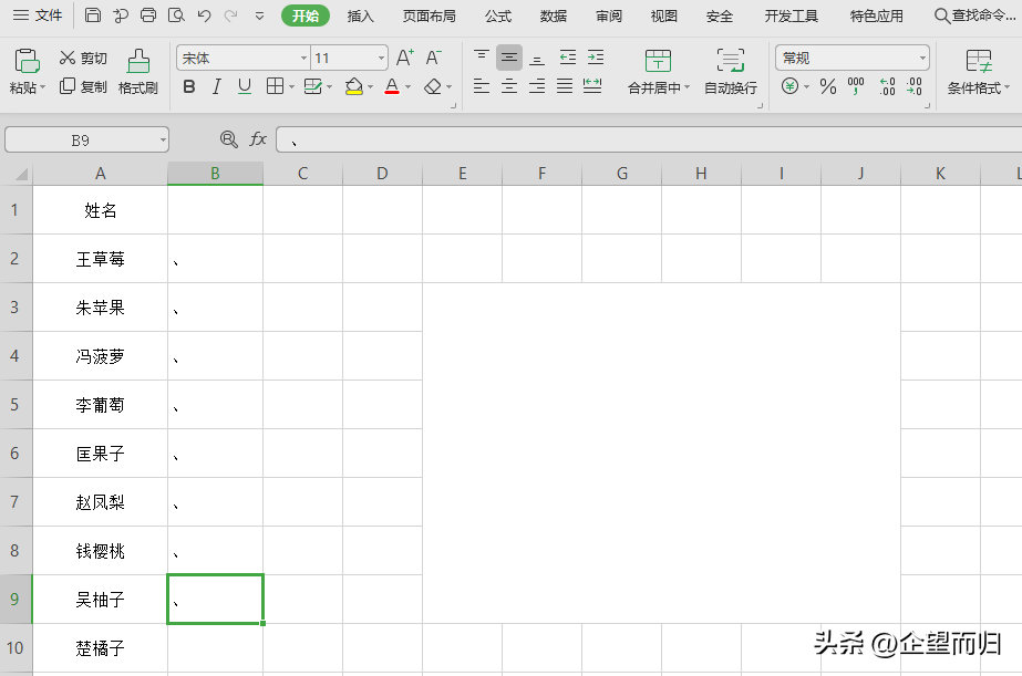 首先,在姓名后的B2:B9单元格输入顿号,然后选择合并单元格