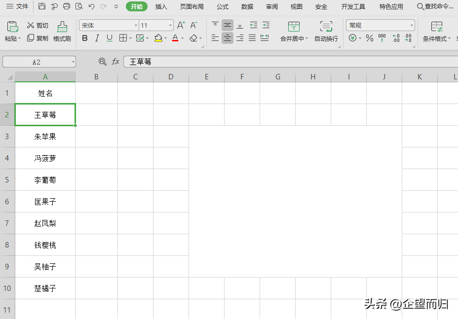 打开Excel表格,表格中A列都是姓名,我们要加顿号,把所有的姓名按顺序合并在一起,然后把合并的名字放在合并的单元格中