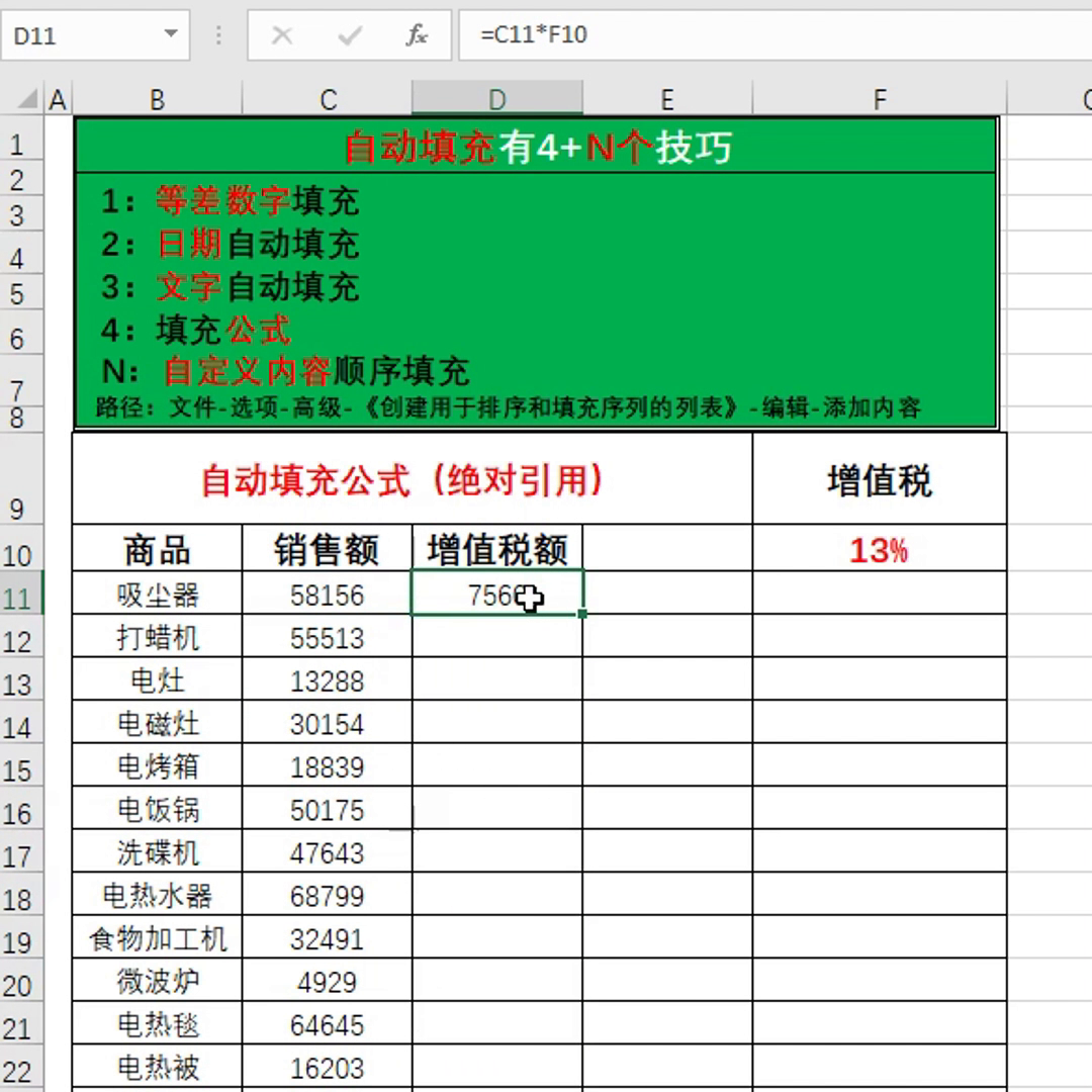 我们选中函数公式中的F10,按F4键一次,这样公式往下拖拽时,税率单元格是固定不变的。在实际工作中,我们根据实际需求灵活运用。