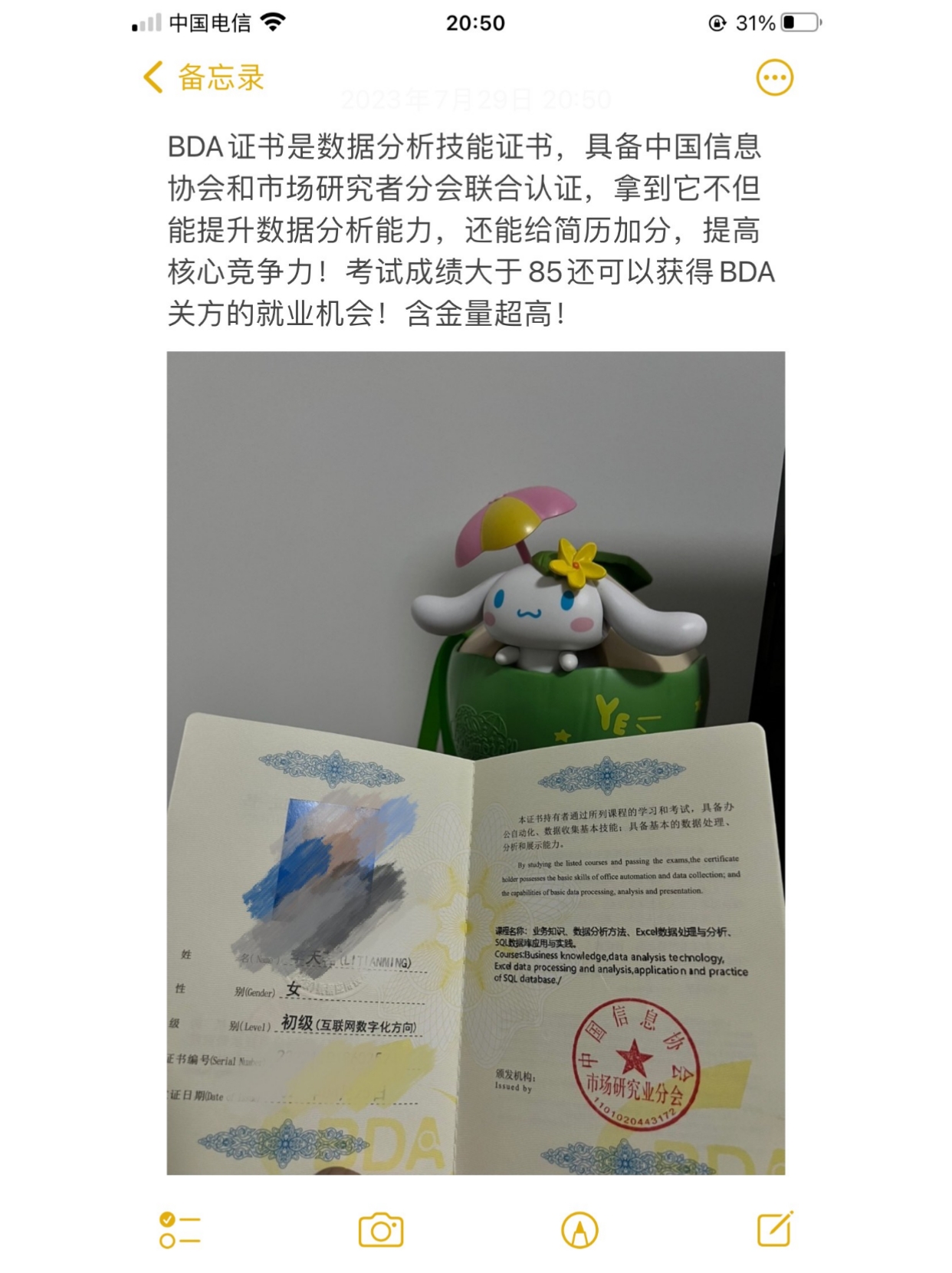 我是在22年通过的BDA数据分析师证书考试,当时听说要考5门有被吓到,觉得肯定会有挂科的,结果备考一个月后等成绩出来时简直不要太开心,5科全过!而且分数都超过了85分,可以获得BDA关方给的就业机会啦!
