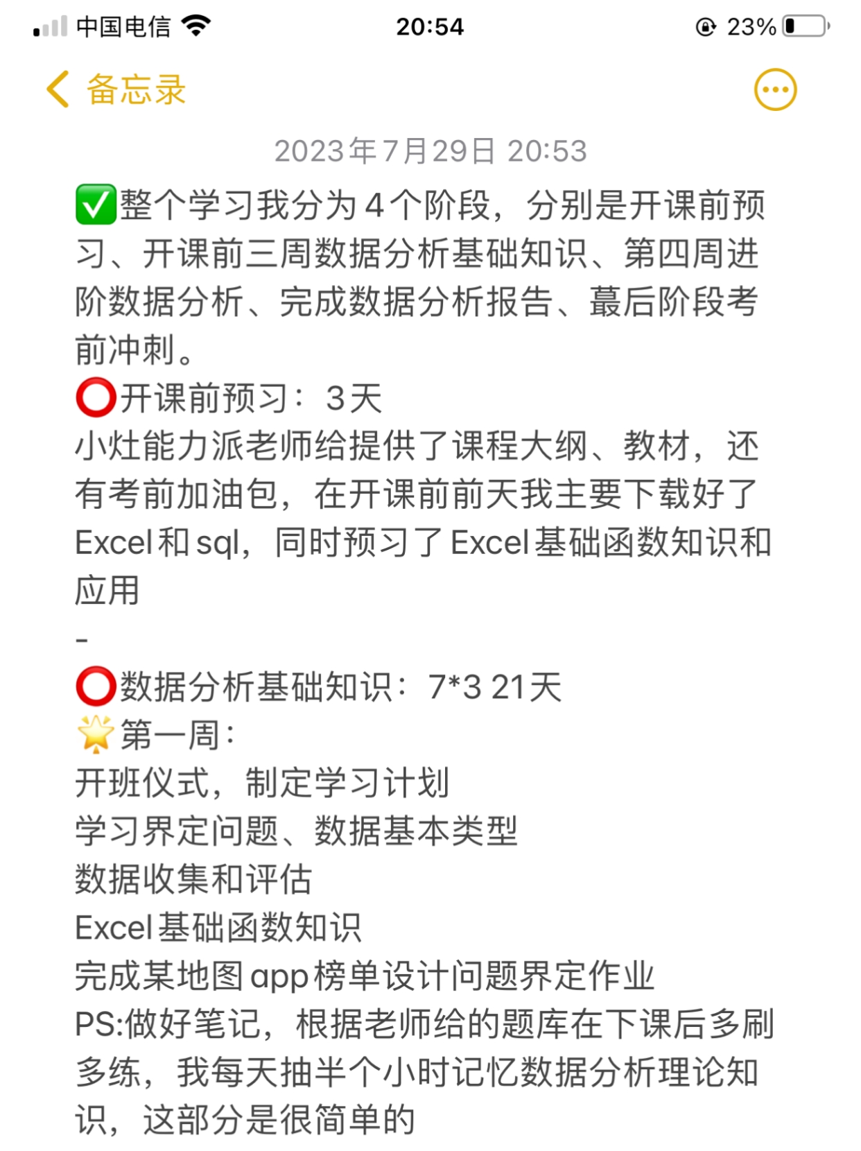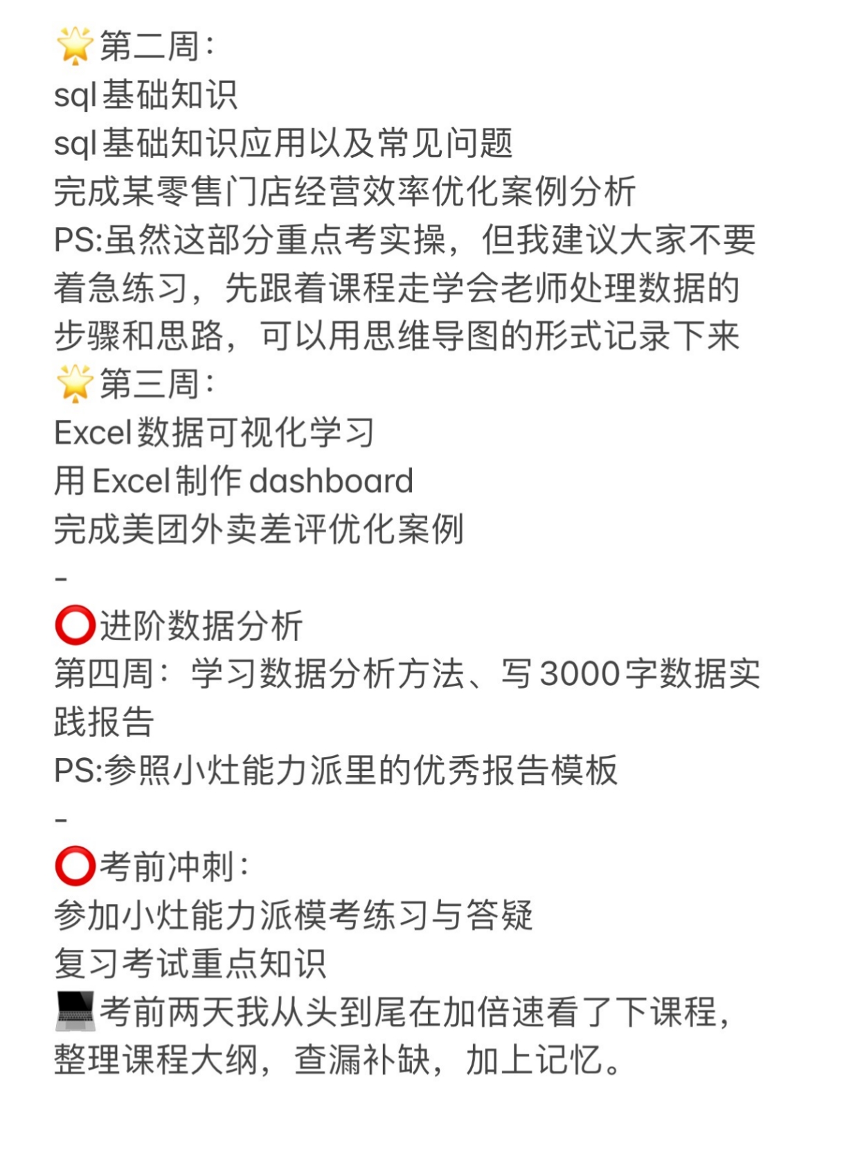 PS:做好笔记,根据老师给的题库在下课后多刷多练,我每天抽半个小时记忆数据分析理论知识,这部分是很简单的