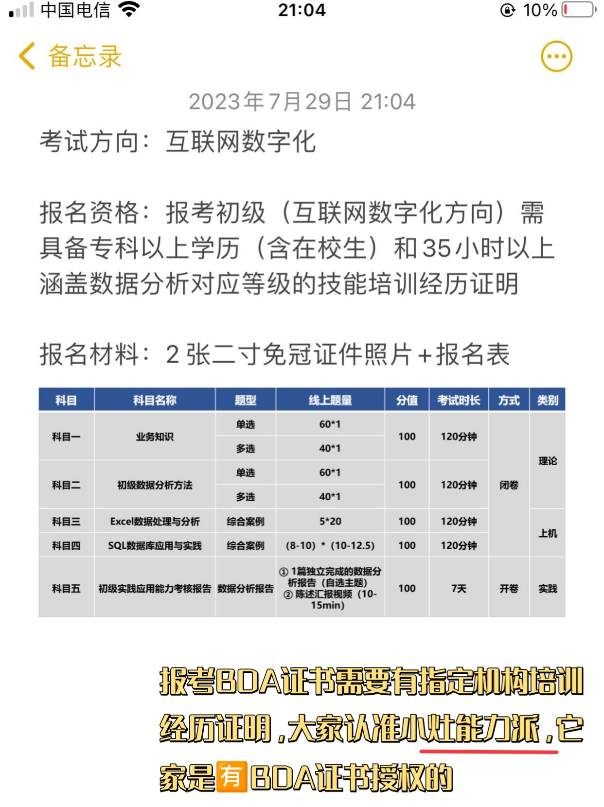 BDA证书是数据分析技能证书,具备中国信息协会和市场研究者分会联合认证,拿到它不但能提升数据分析能力,还能给简历加分,提高核心竞争力我报考的是BDA证书互联网数字化方向,报了小灶能力派的初级BDA考证班,今天就我来说说我的备考经验