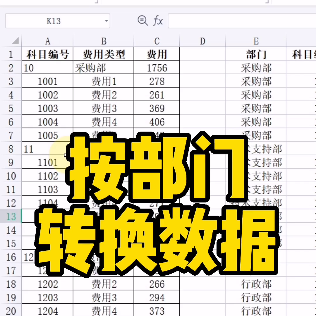 有同学问:如何把前面这样的表格转换成后面这种造型?原来是一个部门在最上面对应的部门的费用,现在要搞成全部是部门,部门把部门补起来。这个怎么搞?其实逻辑很简单,有点类似之前学过的。