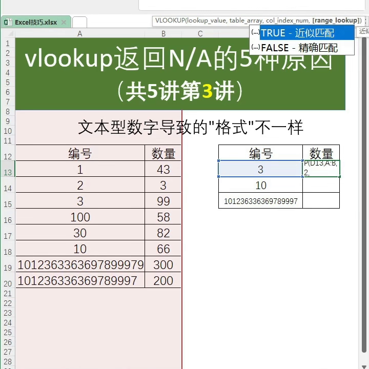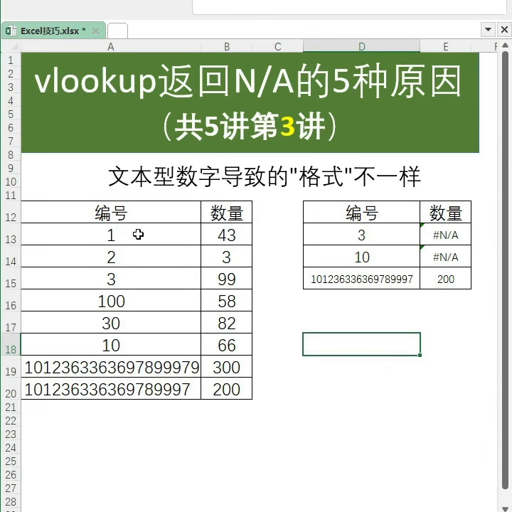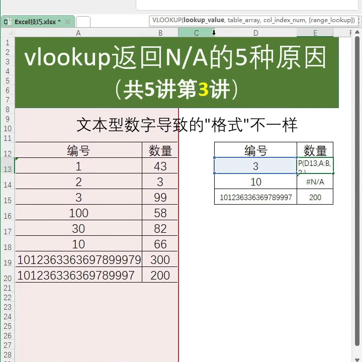 Excel高手必会:vlookup查不到值,返回n的原因3(5种原因第3讲),超级详细讲解。