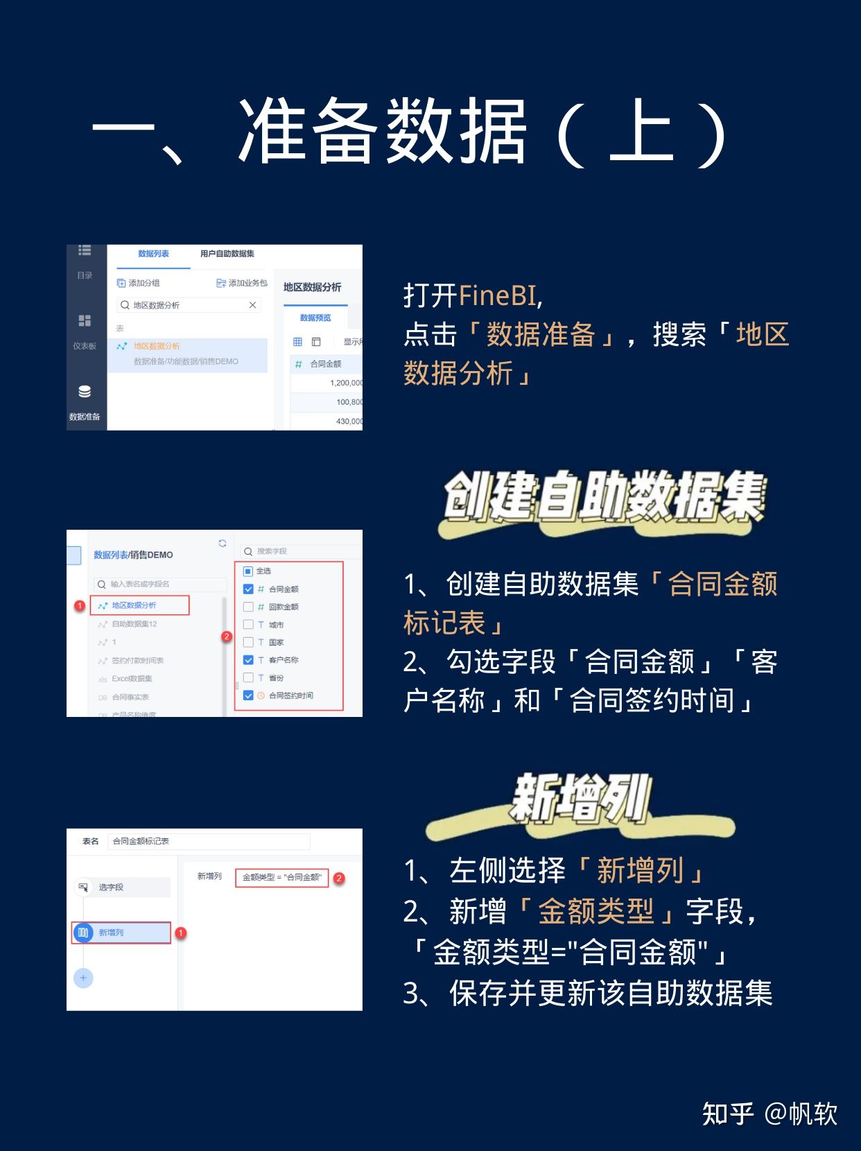 左侧选择「新增列」,新增「金额类型」字段,「金额类型="合同金额"」,保存并更新该自助数据集;