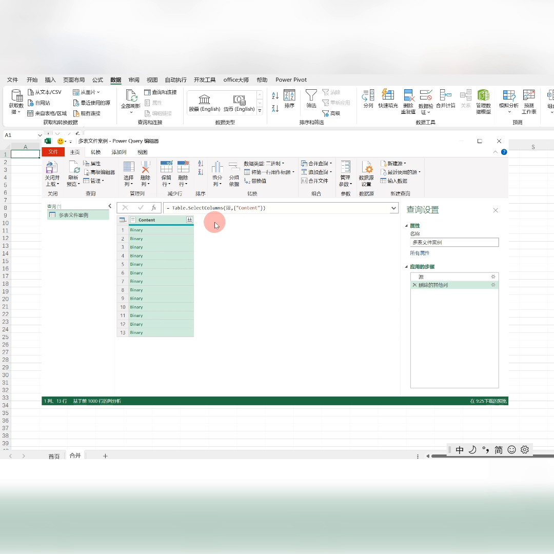 ·在转换数据过程中,您可以看到数据已经被导入到Power Query编辑器中。