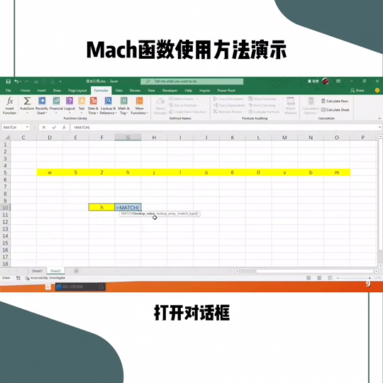 打开对话框,在函数公式栏中这里有个fx?再说一遍这里有一条公式栏,一单击fx,对话框数据打开了,以后无论什么函数都这样做。听到了吗?先写等号,输它的前两个字母,看到函数双击,然后点fx。