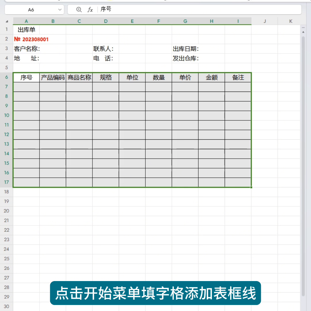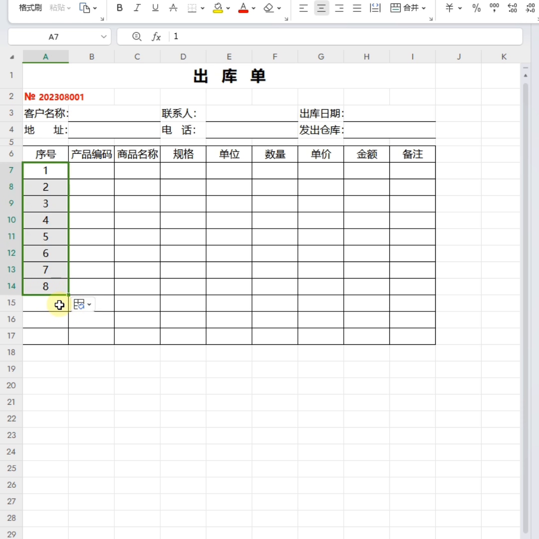 ·把光标放到A1单元格,输上标题,出库单然后按回车。然后输上NO,点击插入,点击符号倒三角。在下面点击NO符号,按空格键输上202308001。