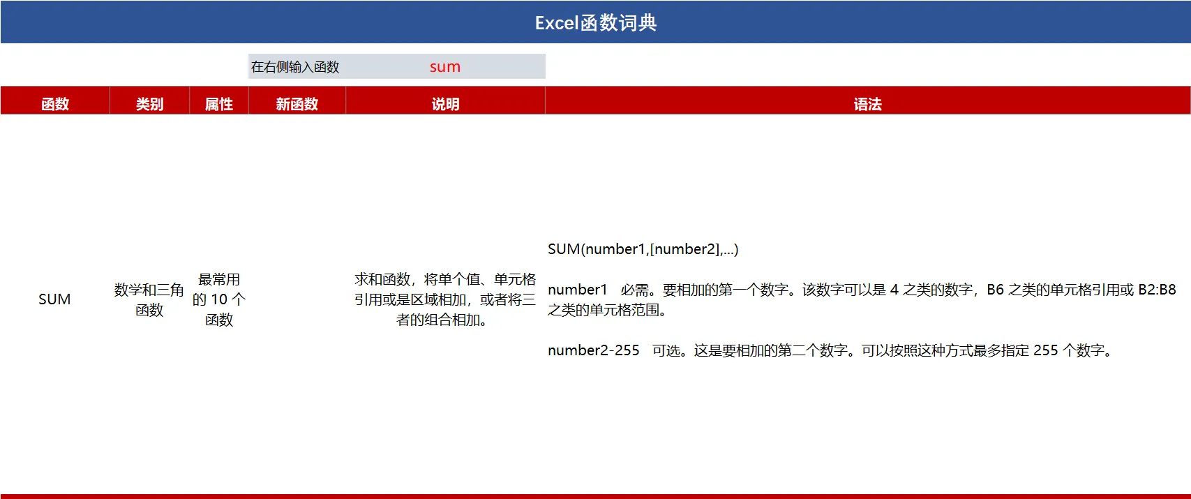 •SUM函数。用于计算某单元格区域中所有数字的和。