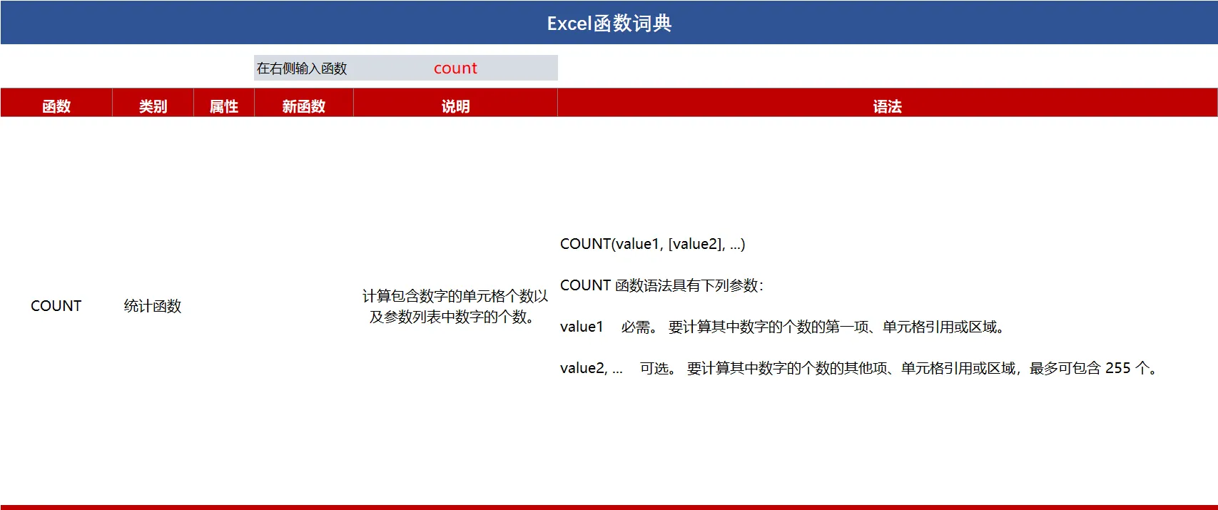 •COUNT函数。用于计算区域中包含数字的单元格的数量。