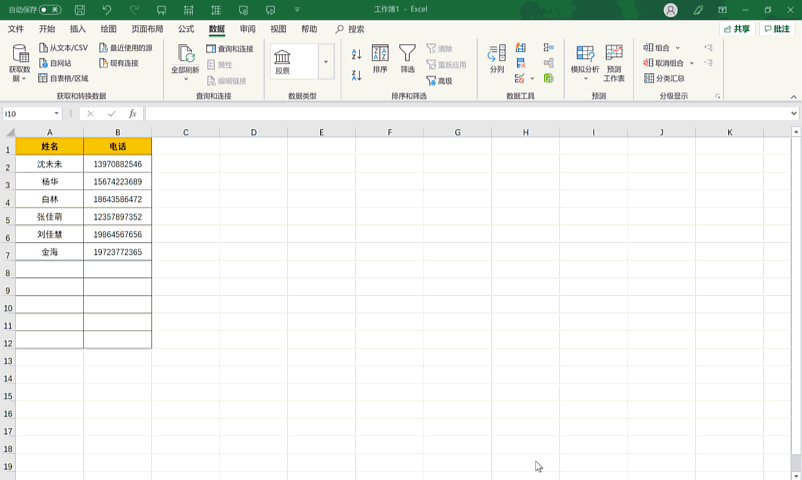 ❶框选手机号所在单元格→点击【数据】菜单栏下的【数据工具】→选择【数据验证】