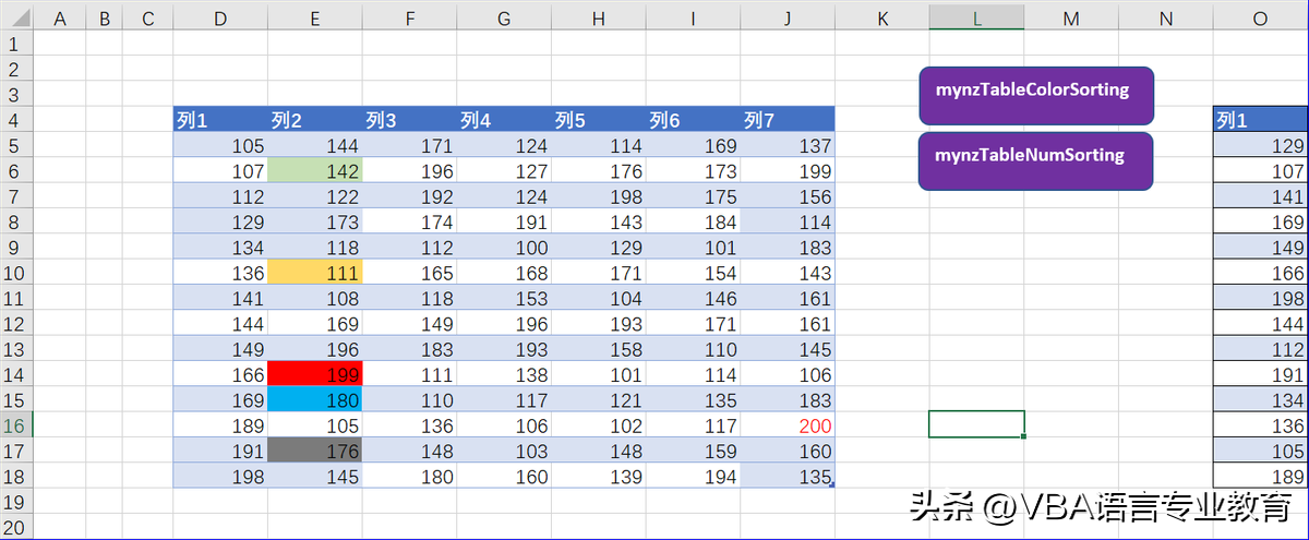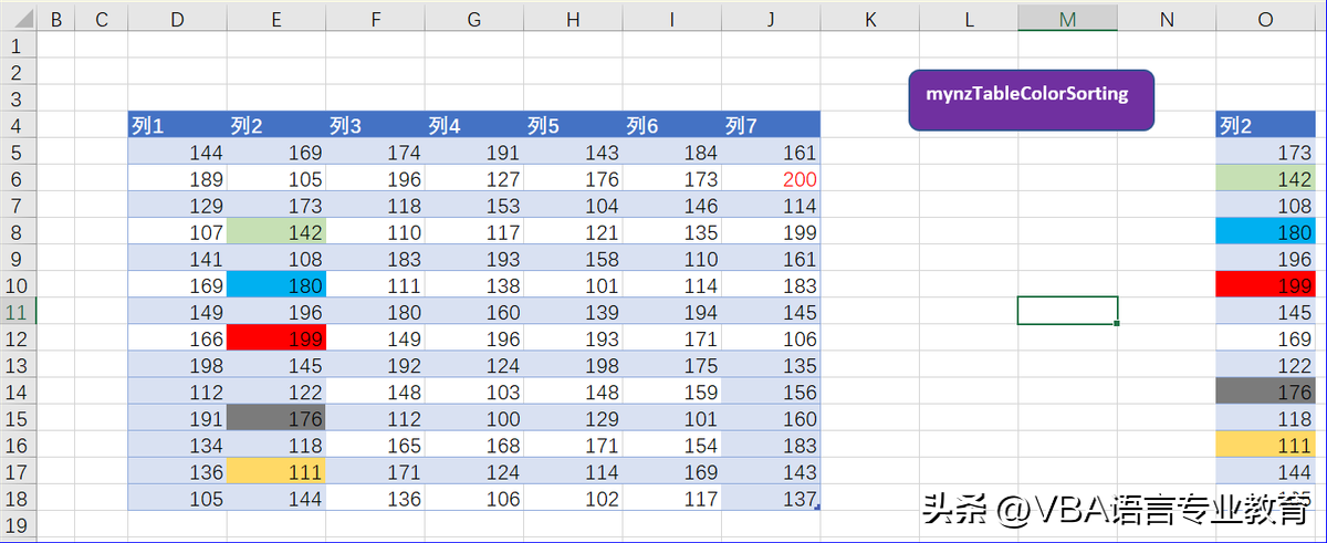 1)首先,利用代码实现按照单元格颜色的排序: