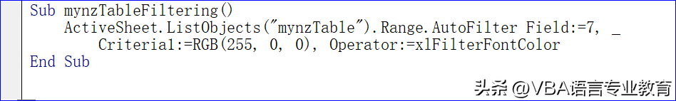 ActiveSheet.ListObjects("mynzTable").Range.AutoFilter Field:=7, _