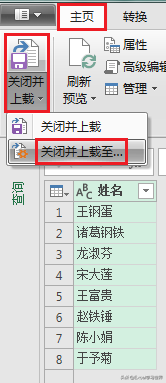 5. 选择菜单栏的“主页”-->“关闭并上载”-->“关闭并上载至...”