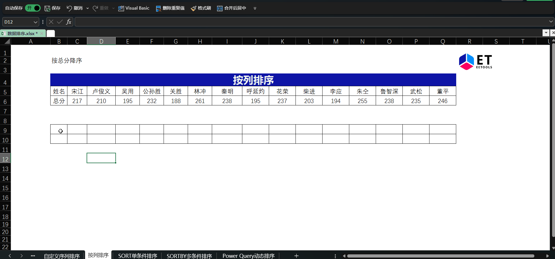 SORT函数可以对数据区域指定的行或列进行自动排序,数据更新后不用再手动排序了,非常的实用。