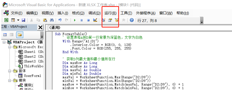 点击:“运行-运行子过程”