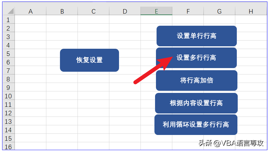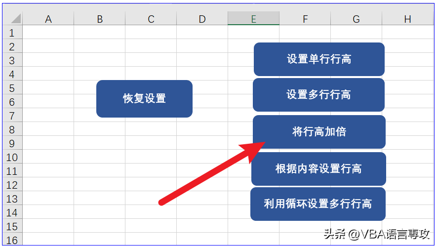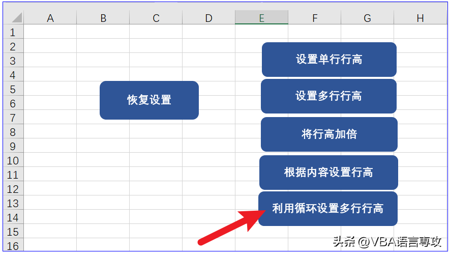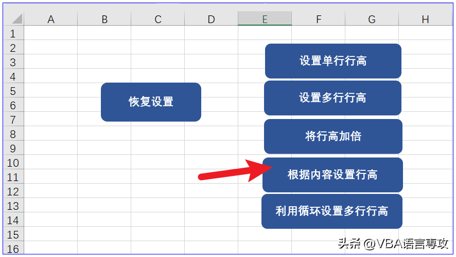 - 代码见程序文件:VBA_CustomizeRowHeight.xlsm